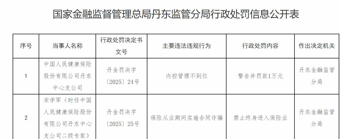 PICC Health Dandeng Central分支机构因内部控制漏洞而受到惩罚,前高管因合同欺诈而被禁止 2025-08-16 8月11日,国家政府丹东监督部门的行政印象的形成表明,中国人民健康保险公司的丹东中央分支有限公司警告并处以10,000元人民币的内部控制管理不足。这首歌(在中国人民健康保险有限公司的丹东中央分支机构的第二级专家)被禁止在保险期内因合同欺诈而进入保险业终身。
